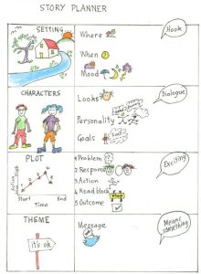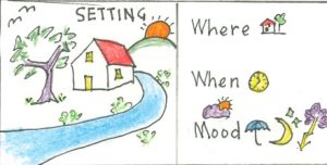 Summary of a story – You must include in just 100 words 5 key things: a hook to engage the reader (e.g., if you like dogs, you must read this story), then describe the setting (time and place), the characters (who they are, their personalities and appearance), the plot (problem, action, solution), and finish with a theme from the story (e.g., this story showed that if you try hard, you can succeed)
